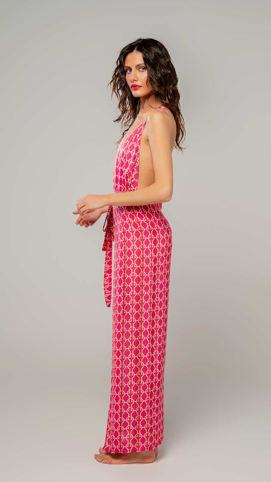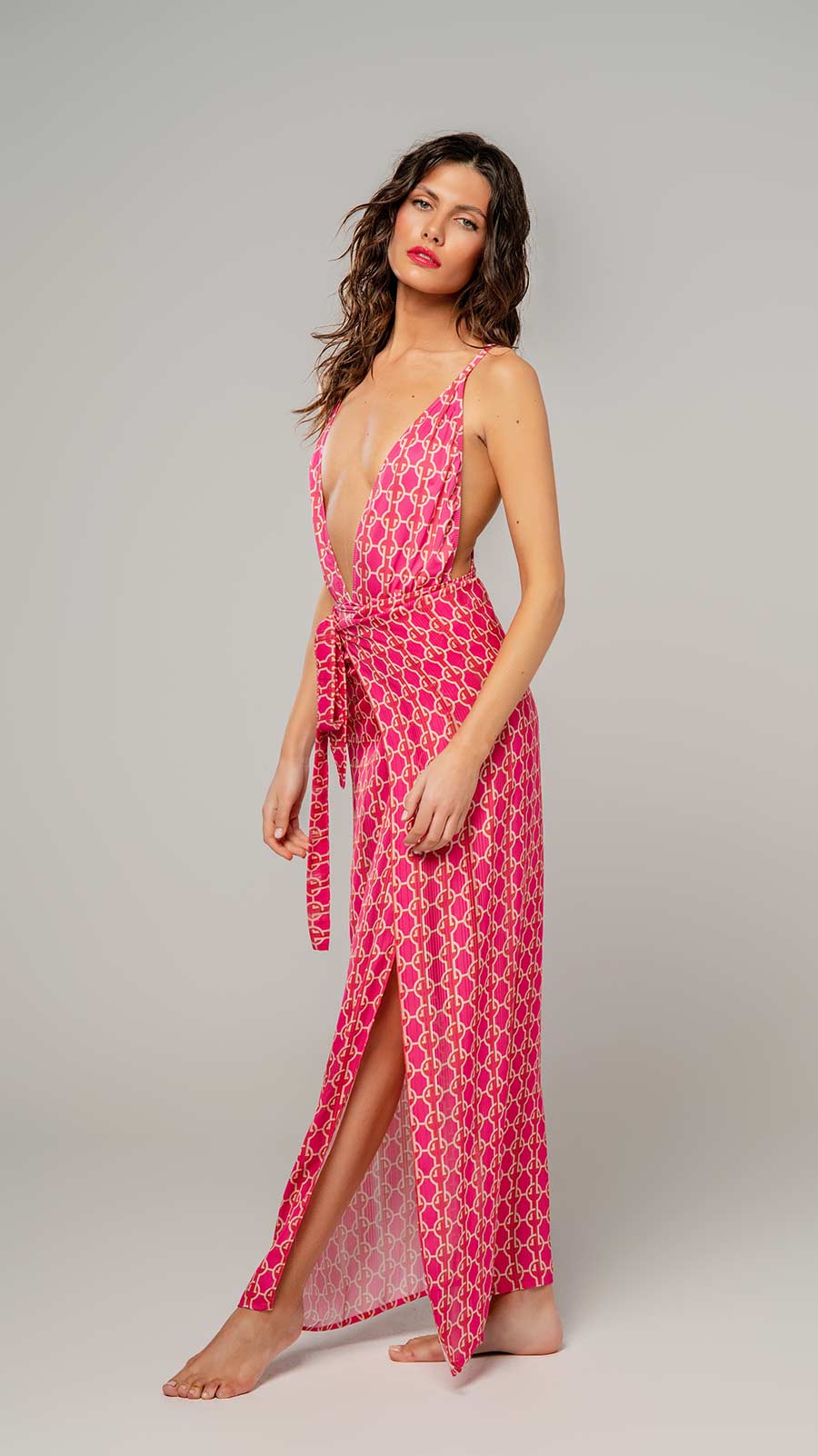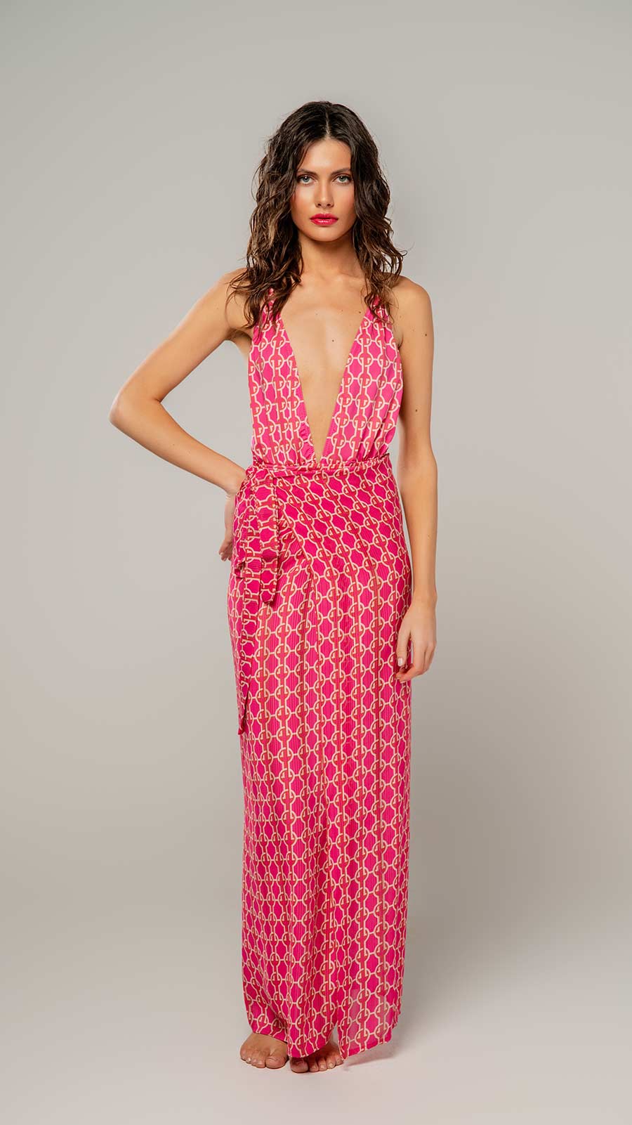 Αναδείξτε τη θηλυκότητά σας με το Honolulu Heat, ένα παρεό σε έντονη φούξια απόχρωση που αποπνέει εξωτική ενέργεια και καλοκαιρινή διάθεση. Η ανάλαφρη υφή του αγκαλιάζει απαλά το σώμα, ενώ μπορεί να δεθεί με πολλούς τρόπους για να προσαρμόζεται στο στιλ και τη διάθεσή σας.