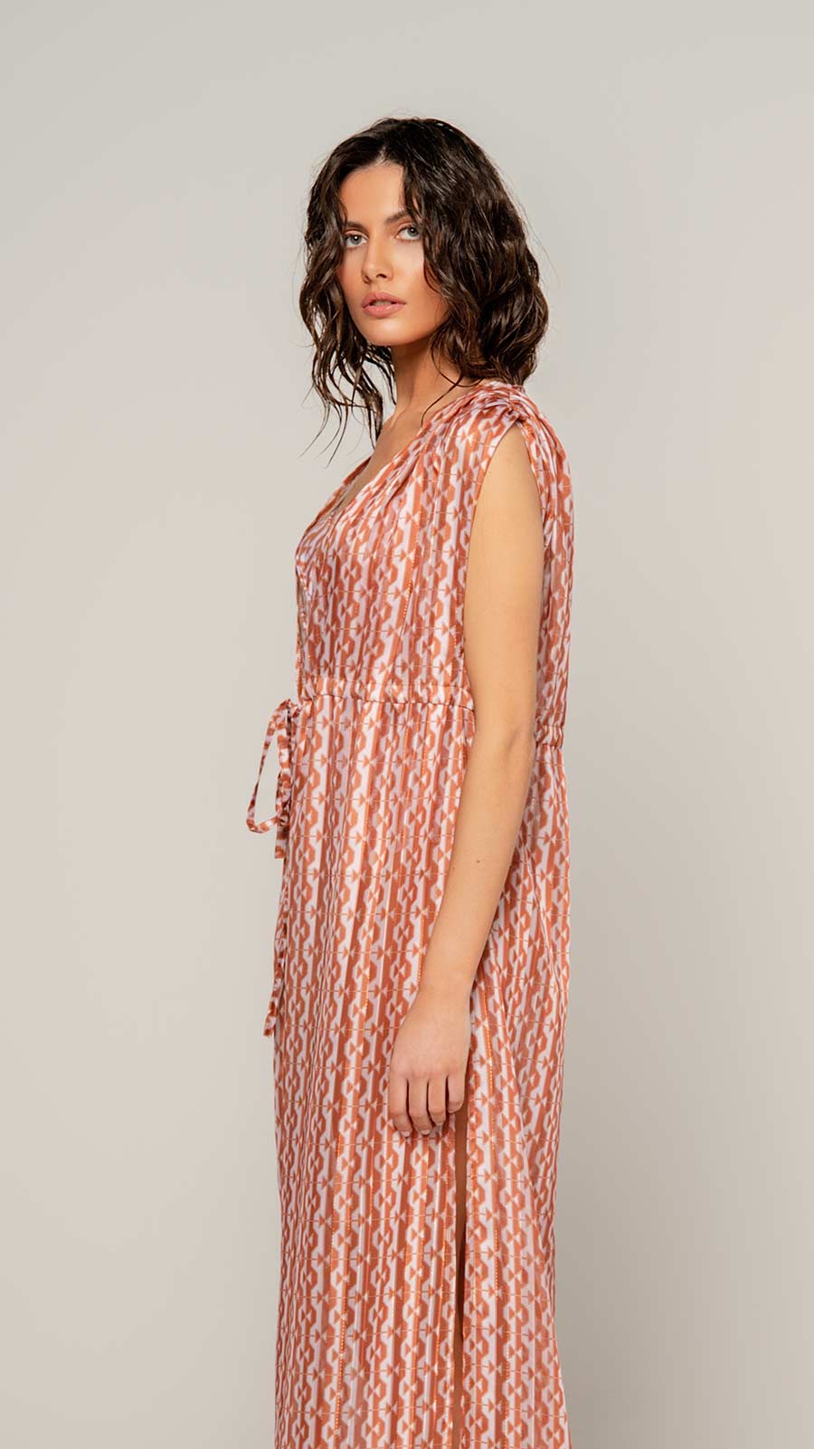 Το κιμονό Maui Sunset αποπνέει εξωτική κομψότητα και χαλαρή πολυτέλεια, εμπνευσμένο από τα ζεστά χρώματα του ηλιοβασιλέματος στο Maui. Με αέρινη γραμμή, αγκαλιάζει το σώμα με χάρη και αναδεικνύει τη θηλυκή σιλουέτα χωρίς περιορισμούς.